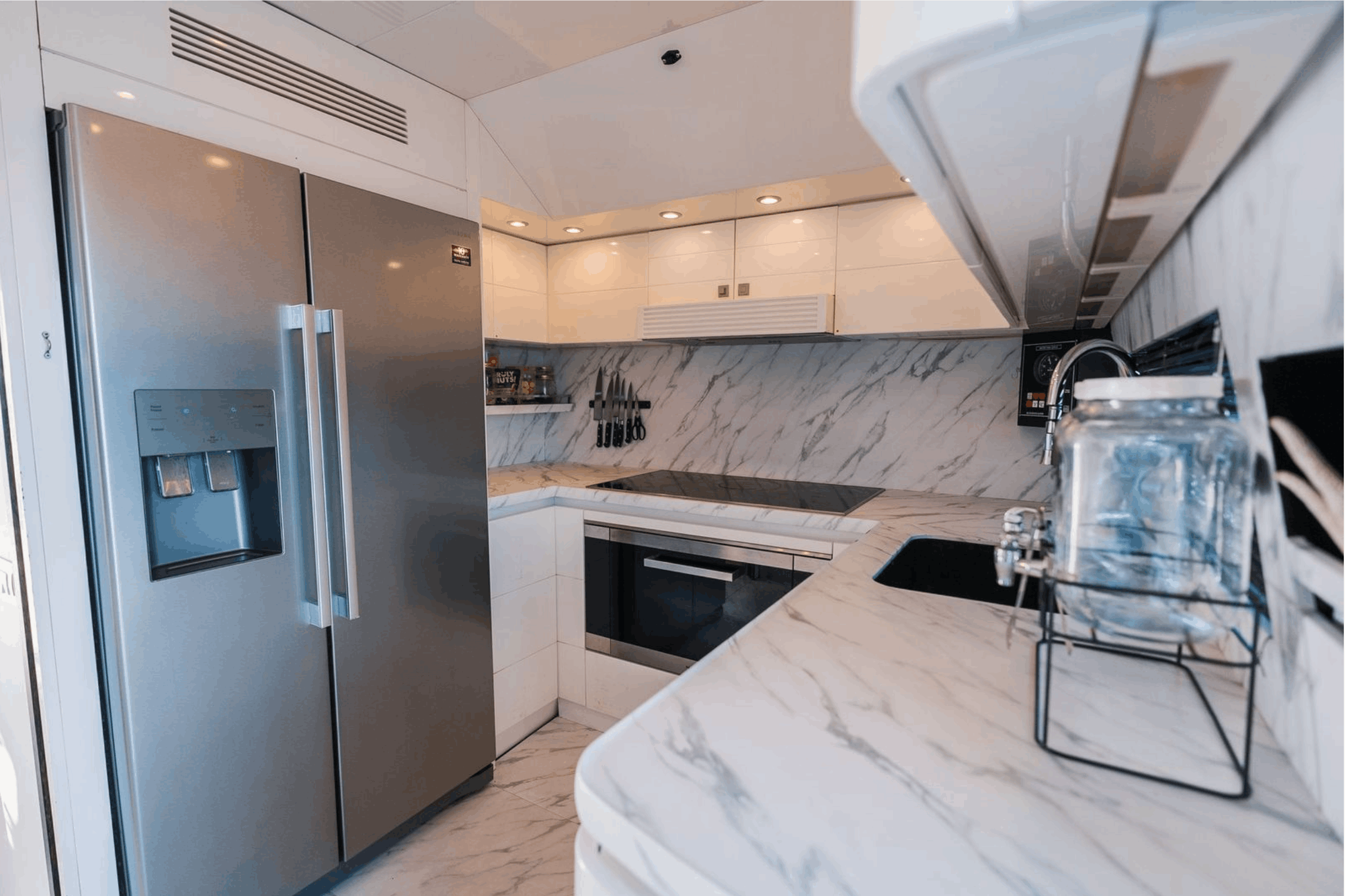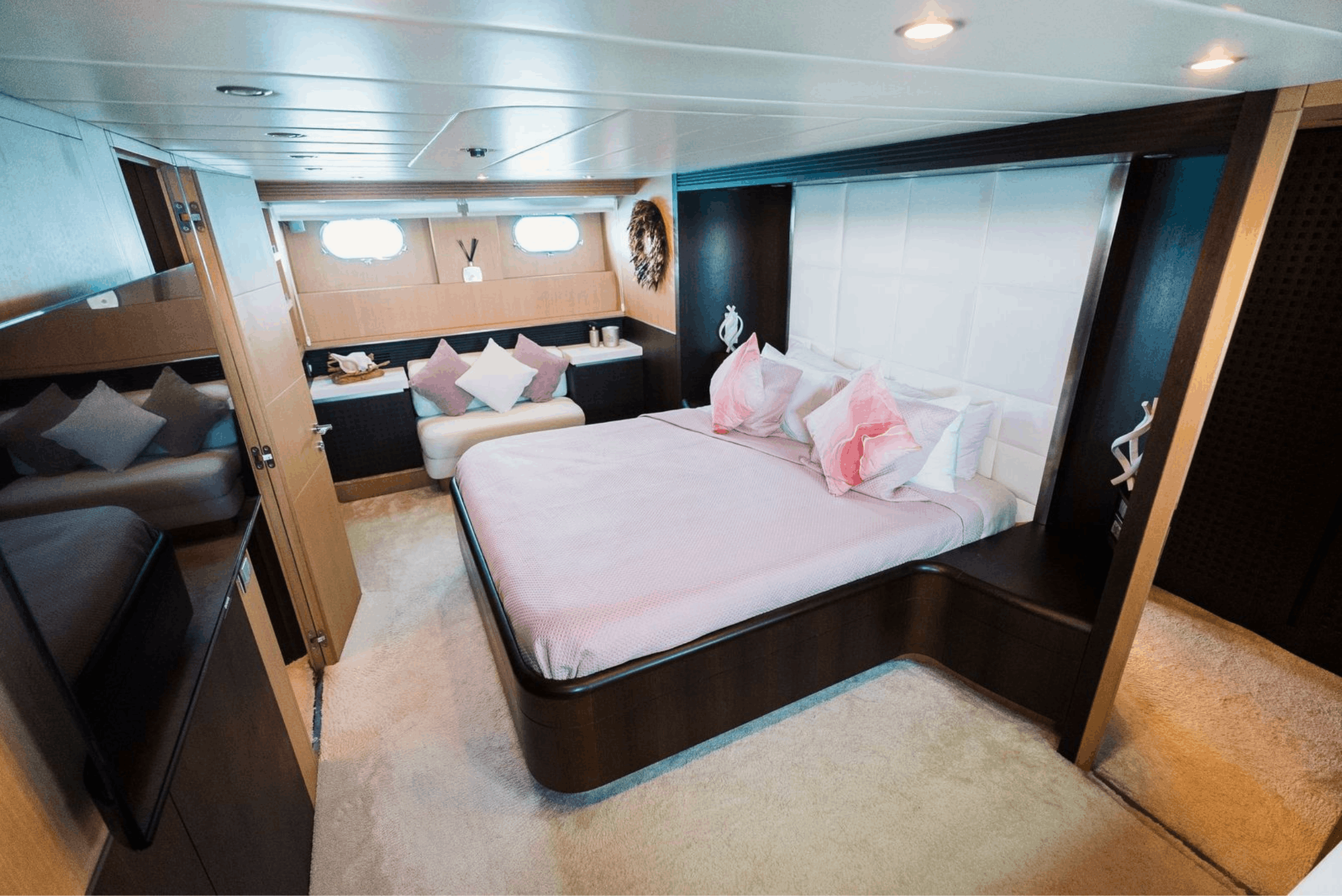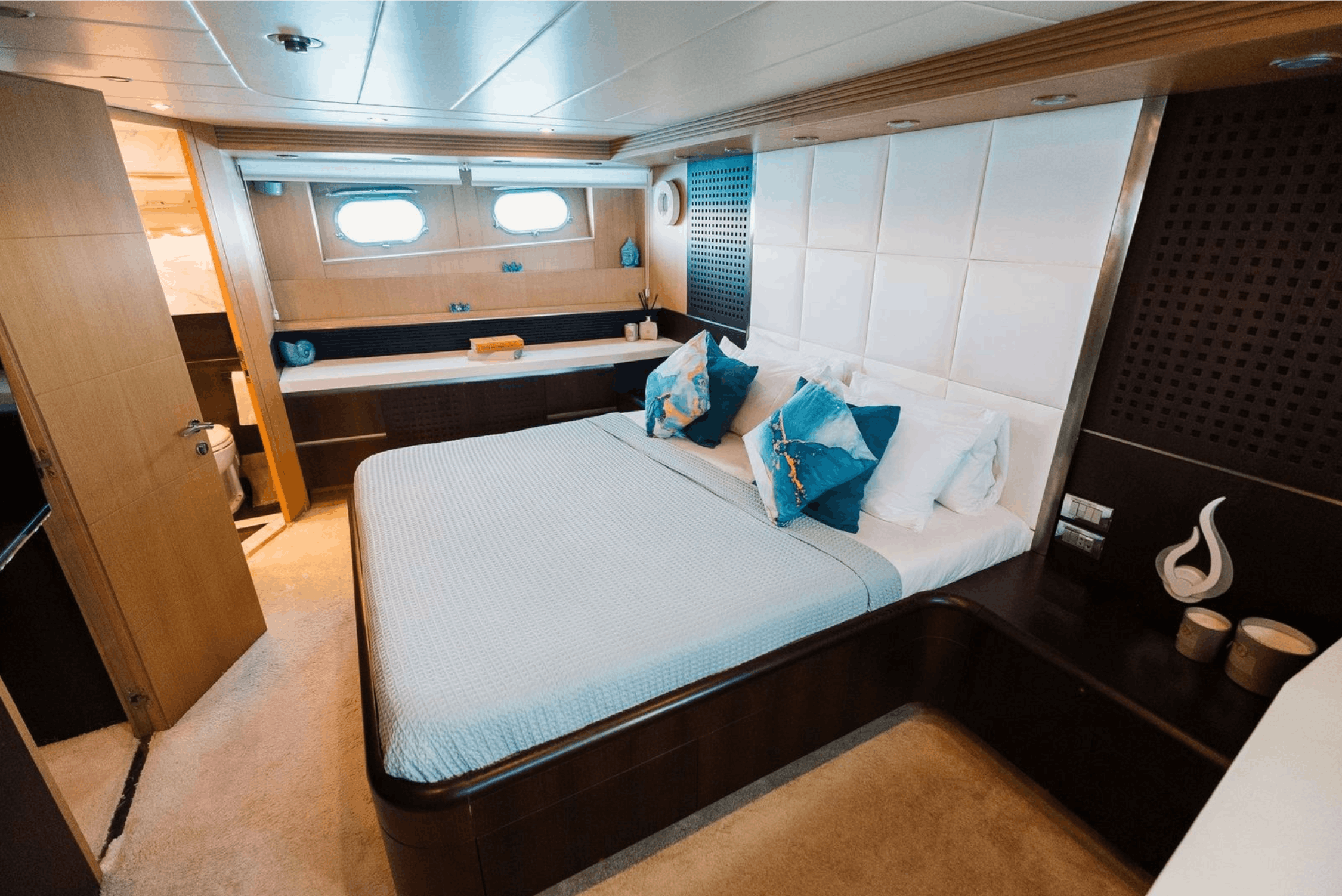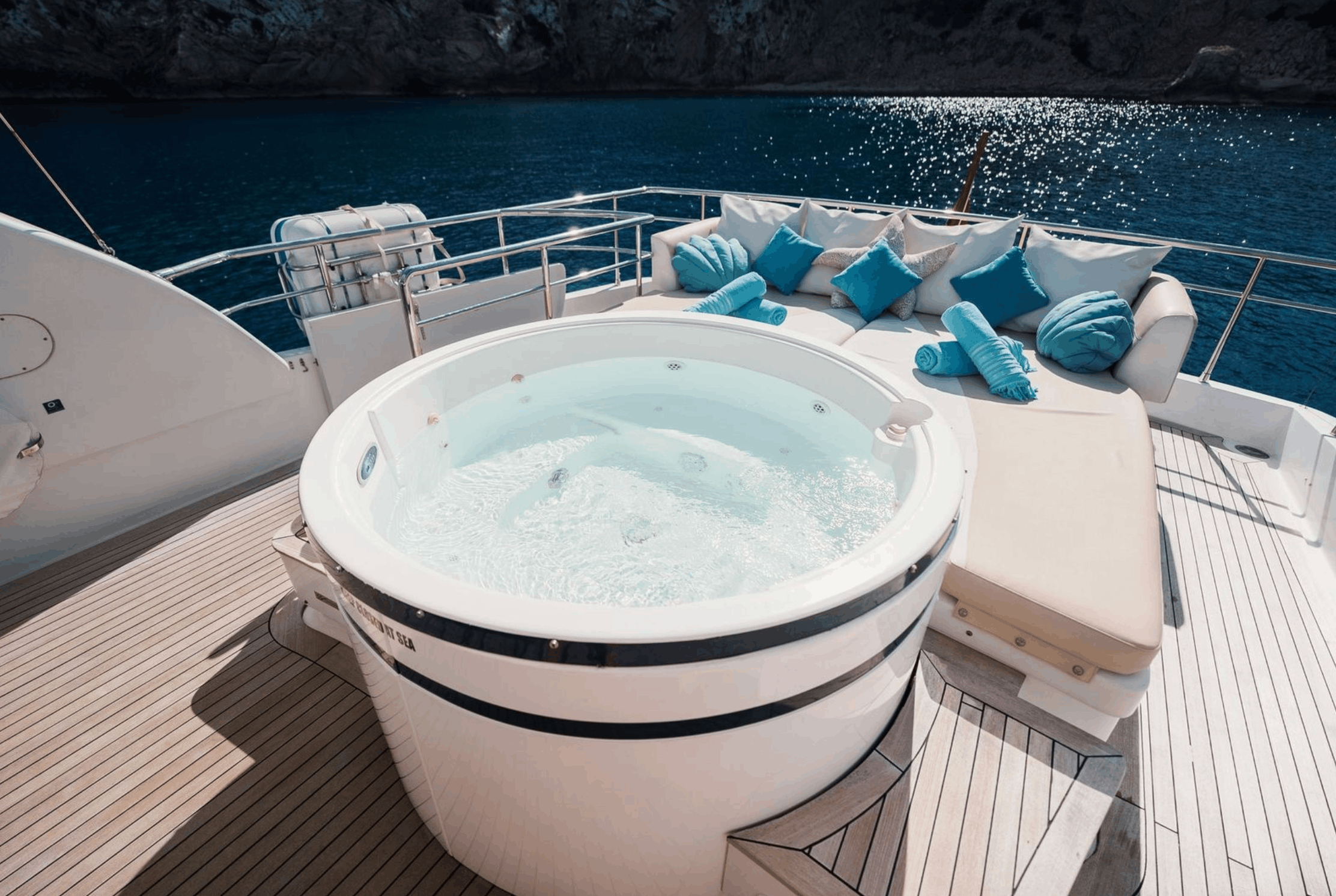 Our Maiora 99 offers sea-dwelling on another level. From the luxurious indoor and outdoor living and dining spaces to the onboard hot tub and plush cabins, she could easily rival any island hotel or villa. The perfect choice for overnight charters, multi-generational trips or a special celebration with your nearest and dearest.