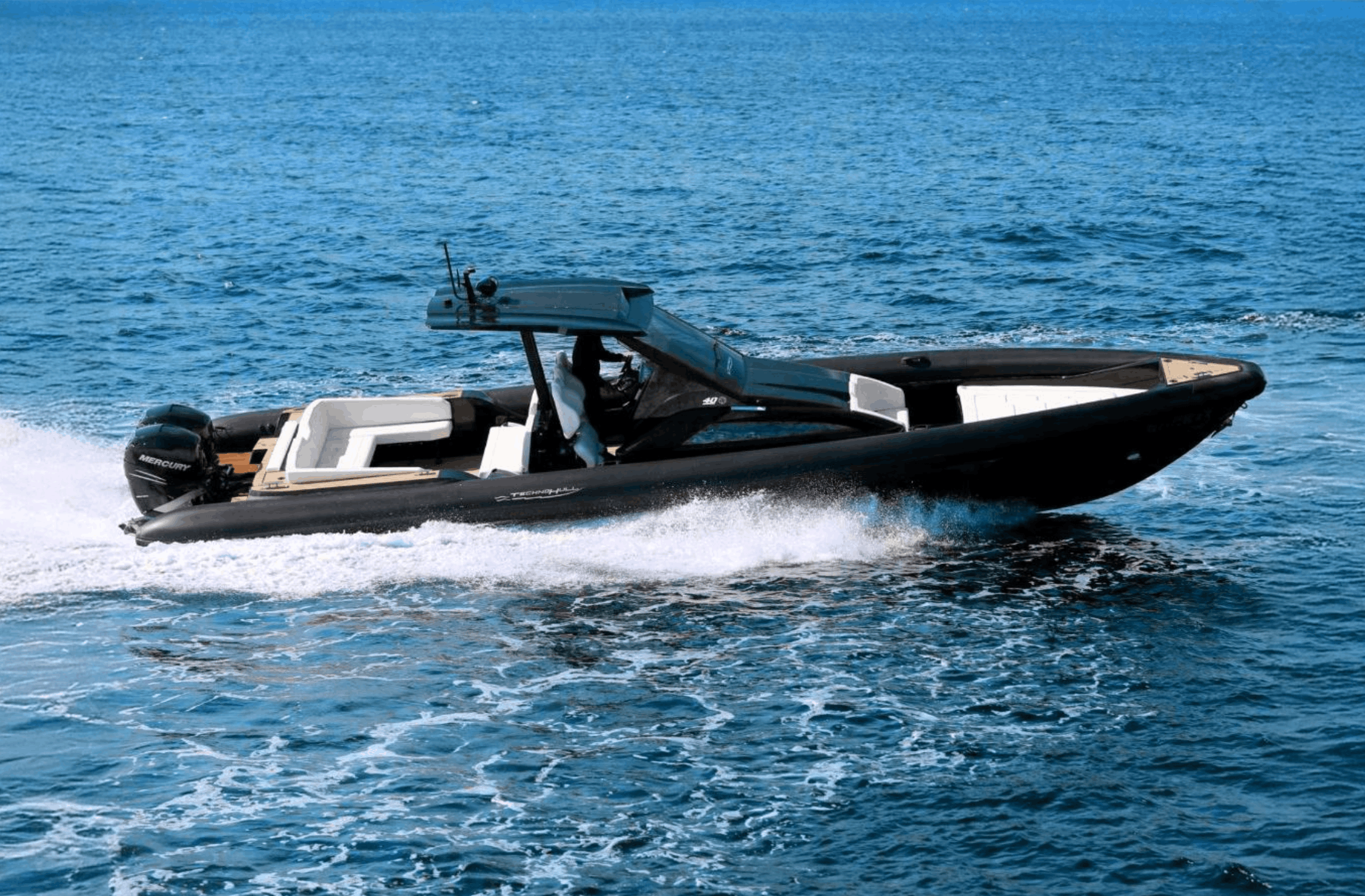 The Technohull 40 blends high-octane performance with refined comfort. Its aggressive, sporty lines and deep-V hull deliver serious speed and control. While the spacious deck, sunbeds, and premium finishes invite you to unwind in style. Whether you’re chasing the horizon or anchoring for a lazy afternoon, the Technohull 40 delivers both adrenaline and relaxation in equal measure.