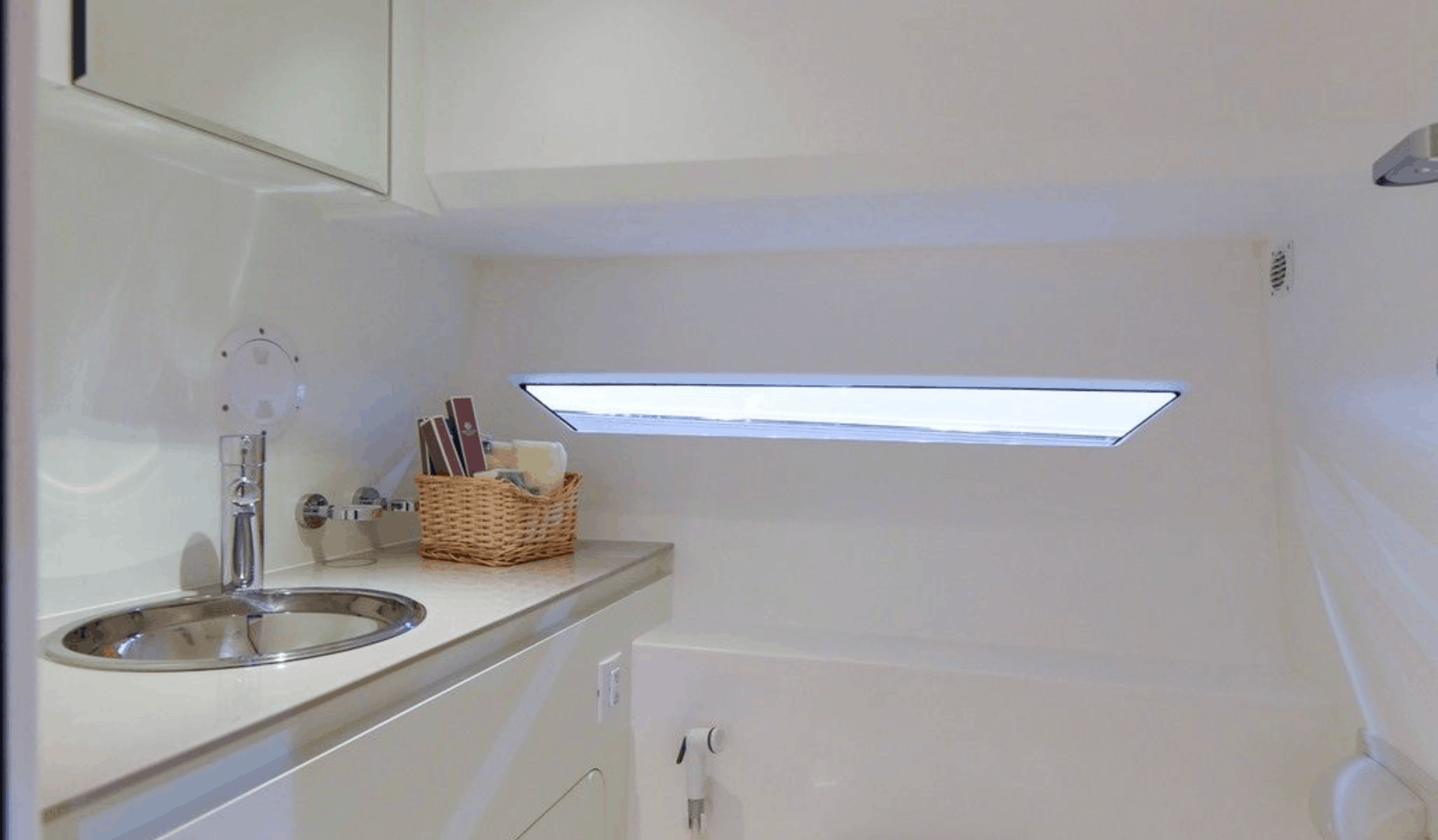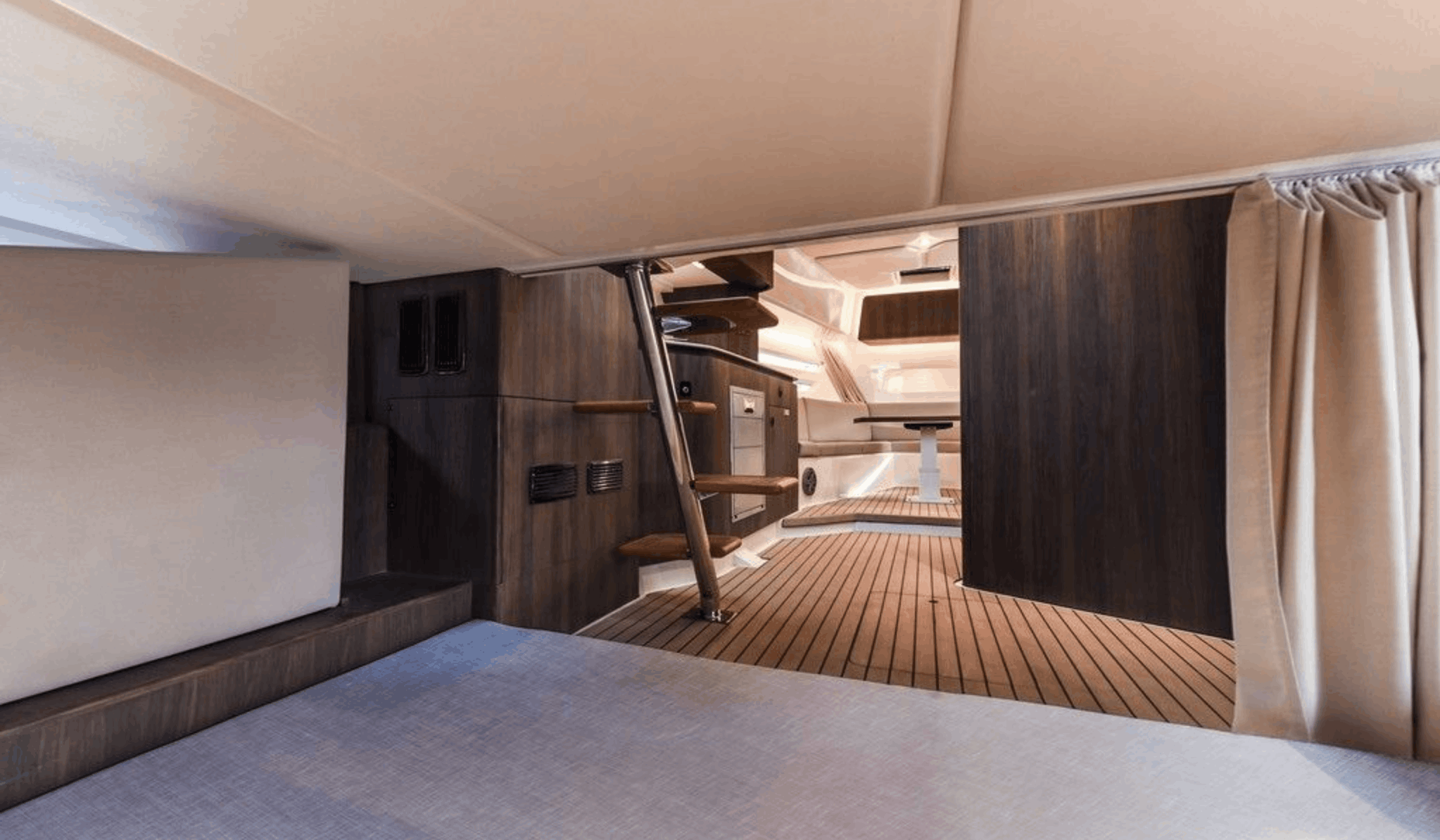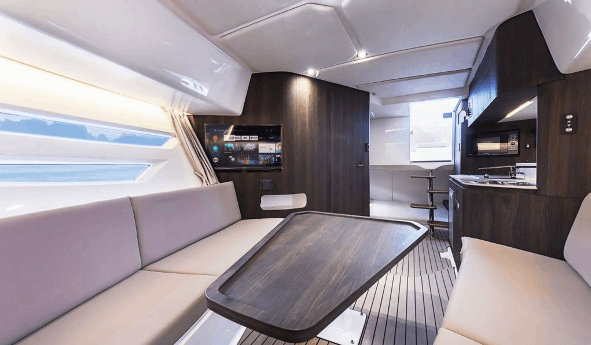 With a sunshade, front and back sunbeds, interior and exterior sitting areas, A/C, a bluetooth music connection plus an interior and exterior Void sound system, this boat leaves nothing to be desired.